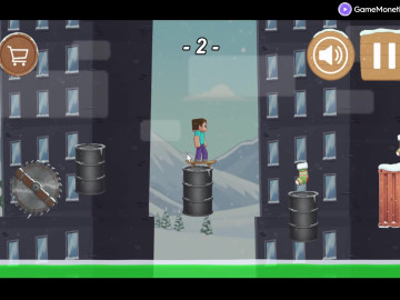 Gördeszkáztál már valaha épületek tetején karácsonykor? Gördeszkázz a háztetőkön és légy nagyon óvatos—ha nagy magasságból leesel, veszítesz. Nagyon óvatosnak kell lenned, hogy elkerüld a magas helyekről való leesést. Haladj át az épületeken és érd el a célvonalat, átugrálva az égen lévő tárgyakon.