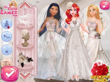 Rapunzel, Pocahontas és Ariel nagy divatrajongók. Mindegyikük szereti a luxus ruha- és kozmetikai márkákat. Ma hármas esküvőt tartanak, és természetesen 3 divatos ruhát szeretnének erre az eseményre. Először is kezdd egy csillogó sminkkel, és válassz ünnepi frizurát. Ezután térjünk át a gyönyörű ruhákra és kiegészítőkre. Készíts 3 tökéletes megjelenést minden hercegnőnek! Mutasd meg a tehetséged!
